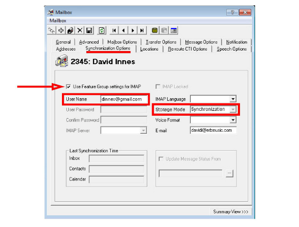 42.Enable the Use Feature Group settings for IMAP checkbox. For User Name, enter the Gmail address for this client.